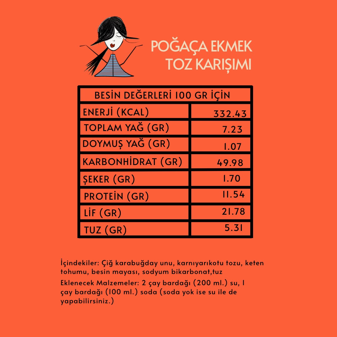 İçindekiler: Çiğkarabuğday unu, karnıyarıkotu tozu, keten tohumu, besin mayası, sodyum bikarbonat,tuz