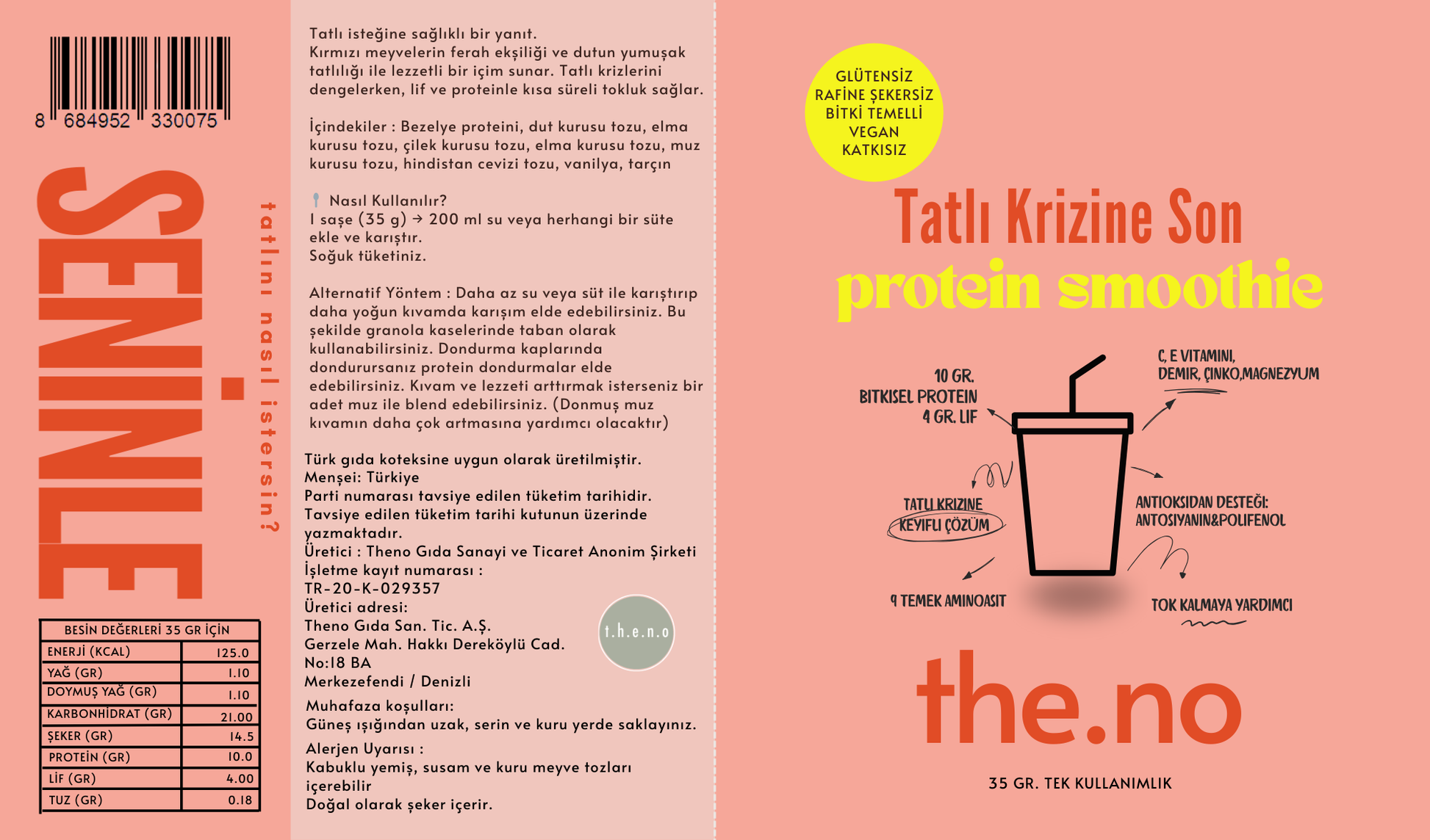 İçindekiler : Bezelye proteini, dut kurusu tozu, elma kurusu tozu, çilek kurusu tozu, elma kurusu tozu, muz kurusu tozu, hindistan cevizi tozu, vanilya, tarçın
